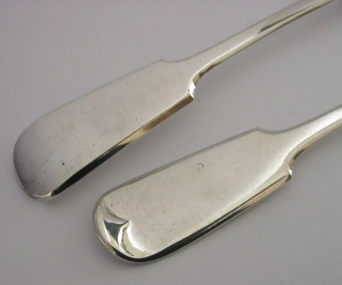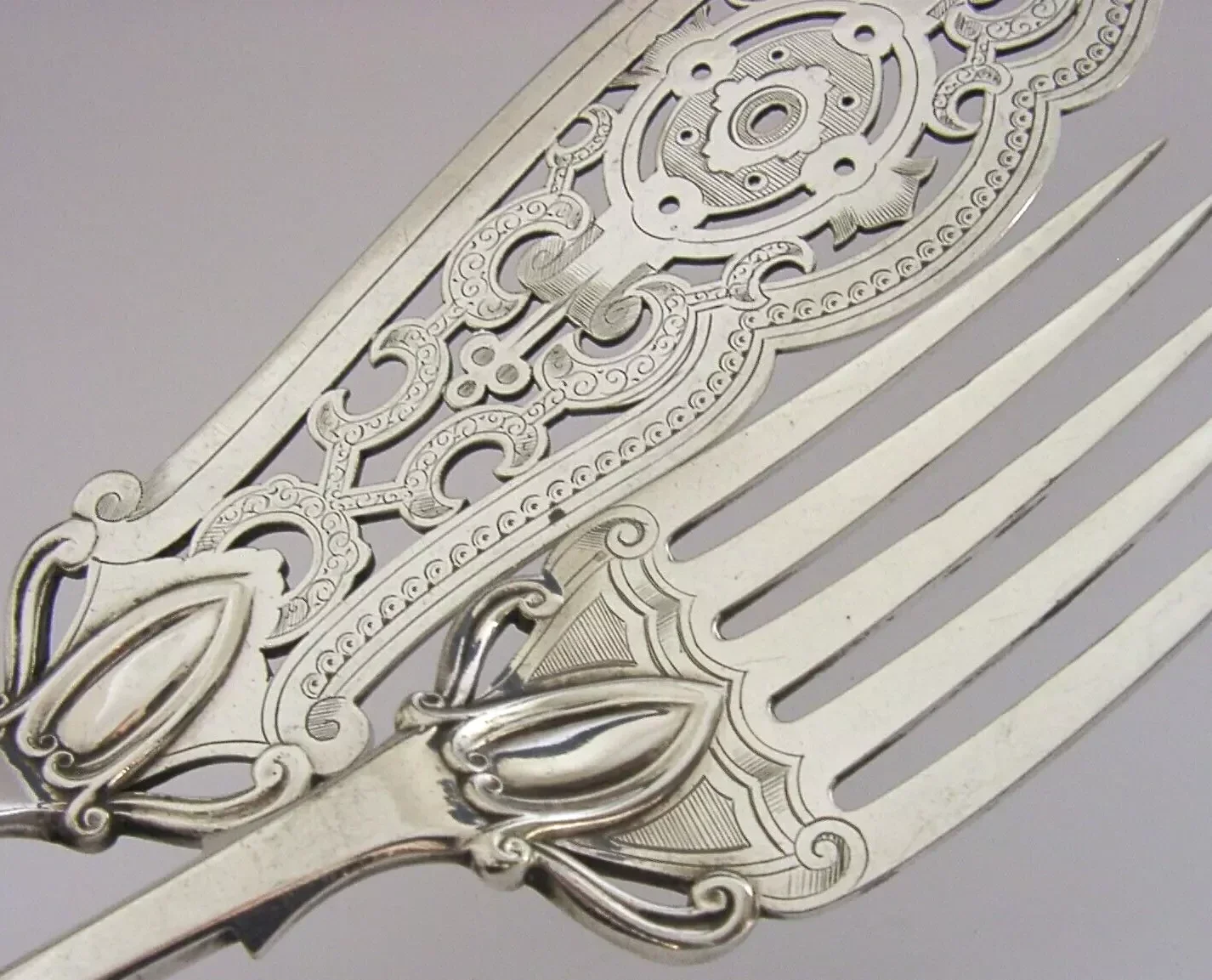 BEAUTIFUL GOTHIC ENGLISH VICTORIAN SILVER PLATED FISH SERVERS 1868 ANTIQUE 292g