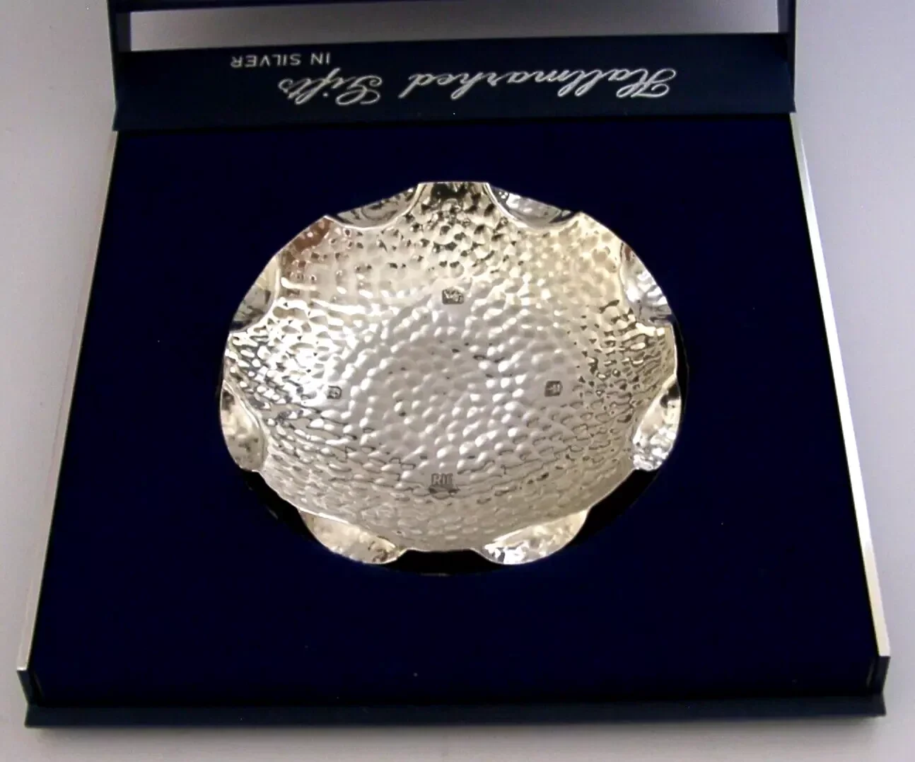 MINT ENGLISH BOXED STERLING SILVER PLANISHED DISH 1972 ROYAL IRISH SILVER Co
