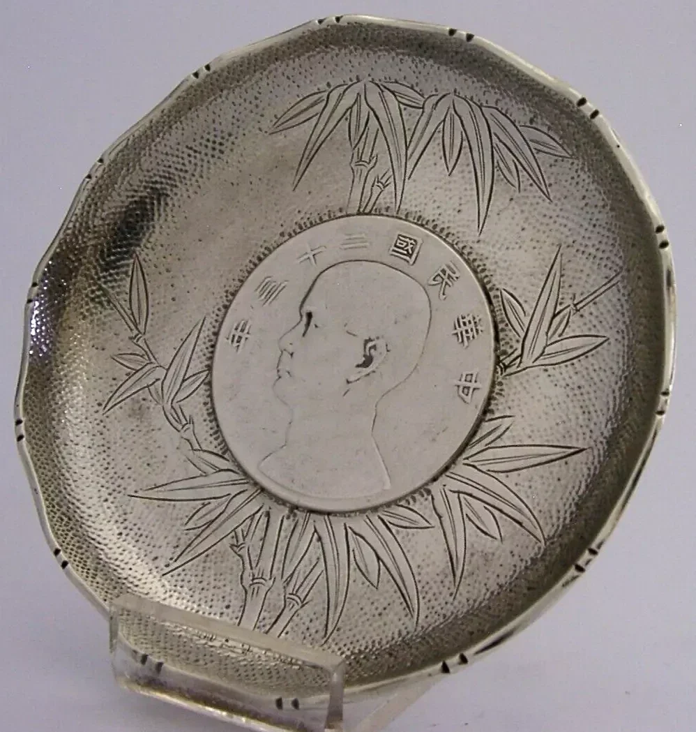 RARE CHINESE EXPORT STERLING SILVER COIN DISH 1934 WAI KEE