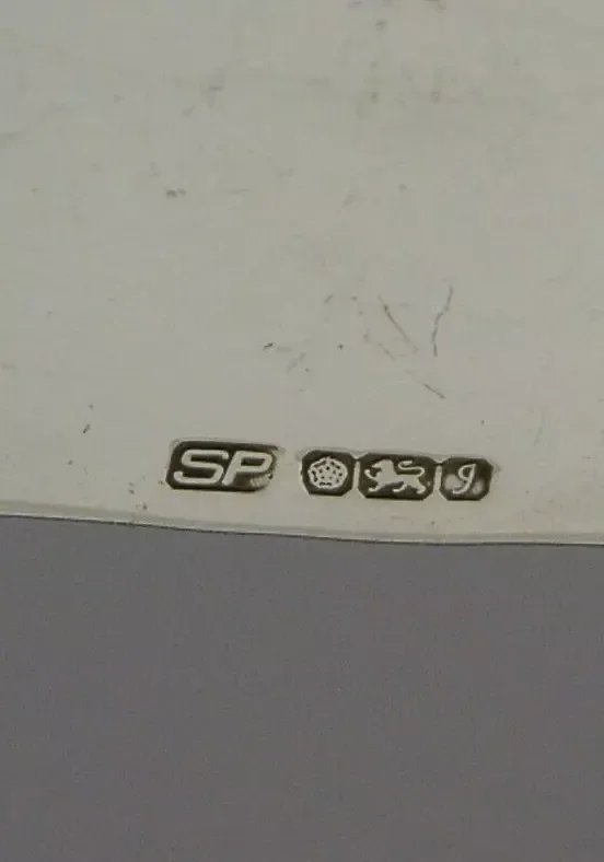 A lovely English solid sterling silver napkin ring. It is hallmarked for Sheffield 1983 with the makers mark being SP. It has been superbly made being pierced in the form of a kingfisher bird with fish in its mouth. It is in super condition being free from dings splits distortions and repairs. It measures approx. 2.25 inches (5.6cm) across by over 1 inch (2.8cm) wide by 1.25 inches (3.2cm) tall and weighs 30 grams excluding the case. A very high quality example.