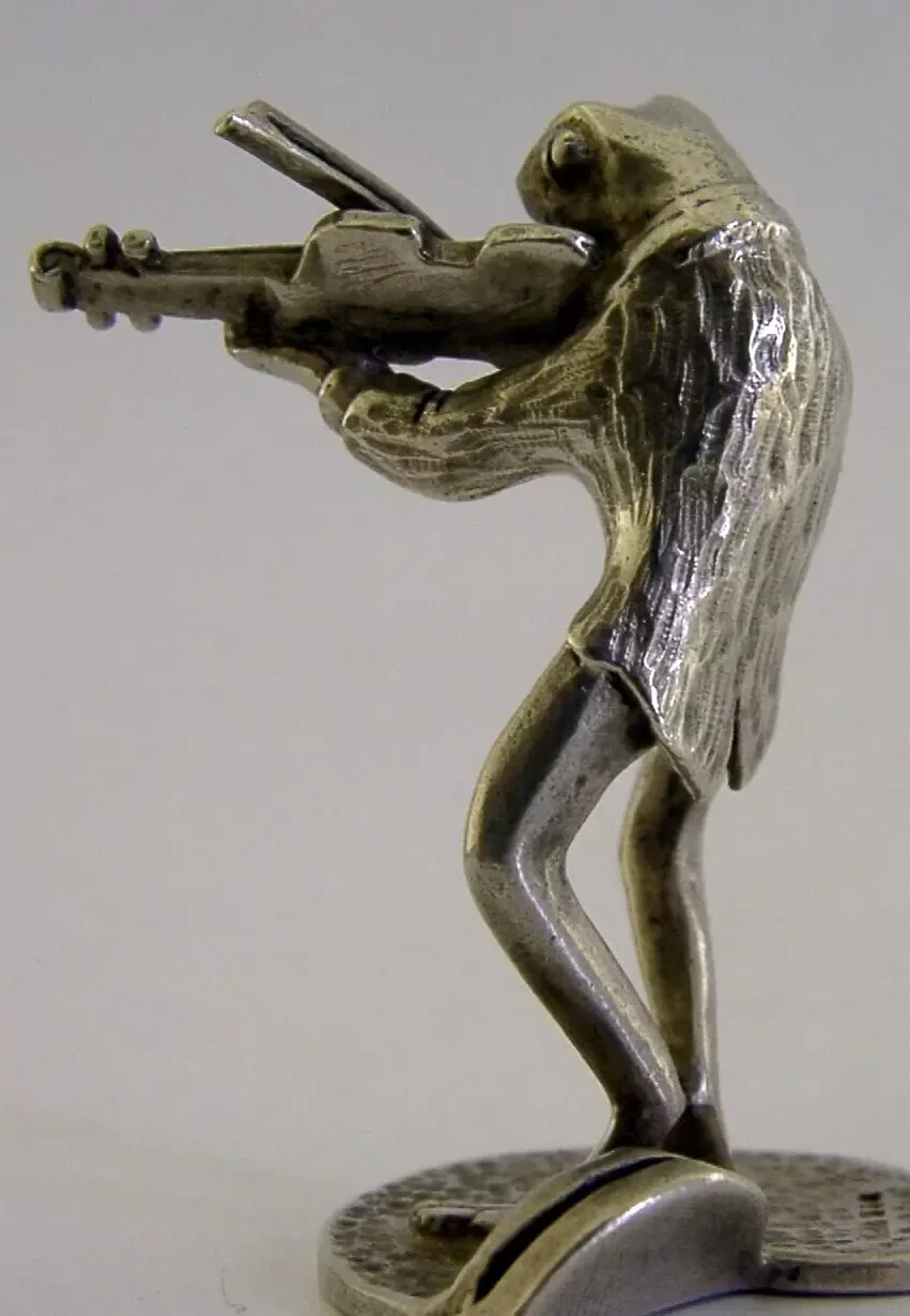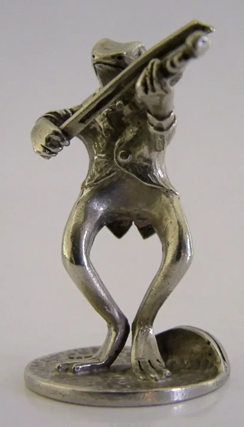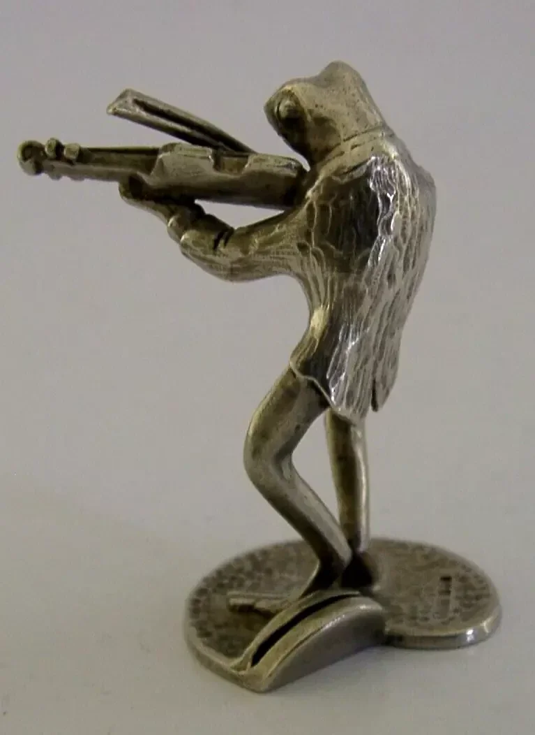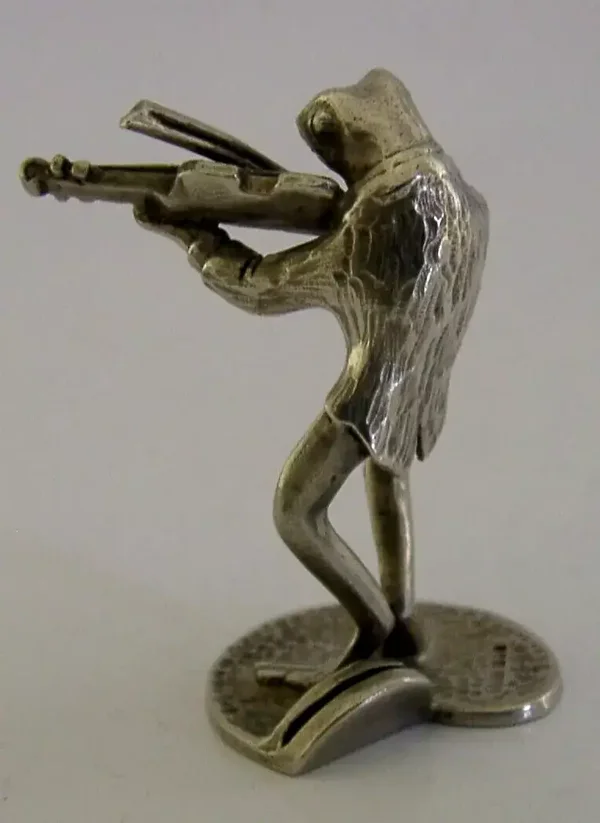 STERLING SILVER ANIMAL FROG PLAYING VIOLIN MENU HOLDER LONDON 1989 NOVELTY