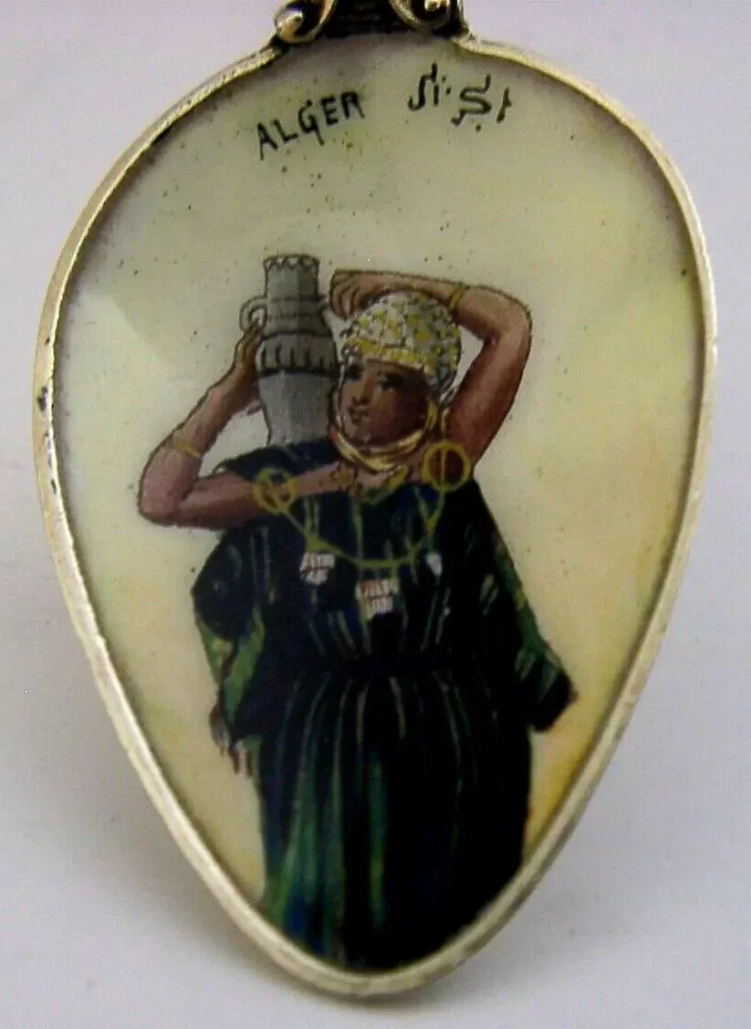 RARE STERLING SILVER ENAMEL PICTURE BOWL SOUVENIR SPOON c1910 ALGERIA ANTIQUE