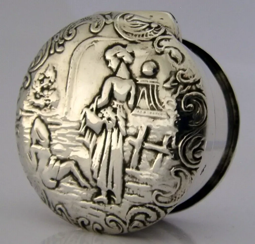 BEAUTIFUL DUTCH SOLID SILVER PILL SNUFF BOX c1900 ANTIQUE DESK ITEM