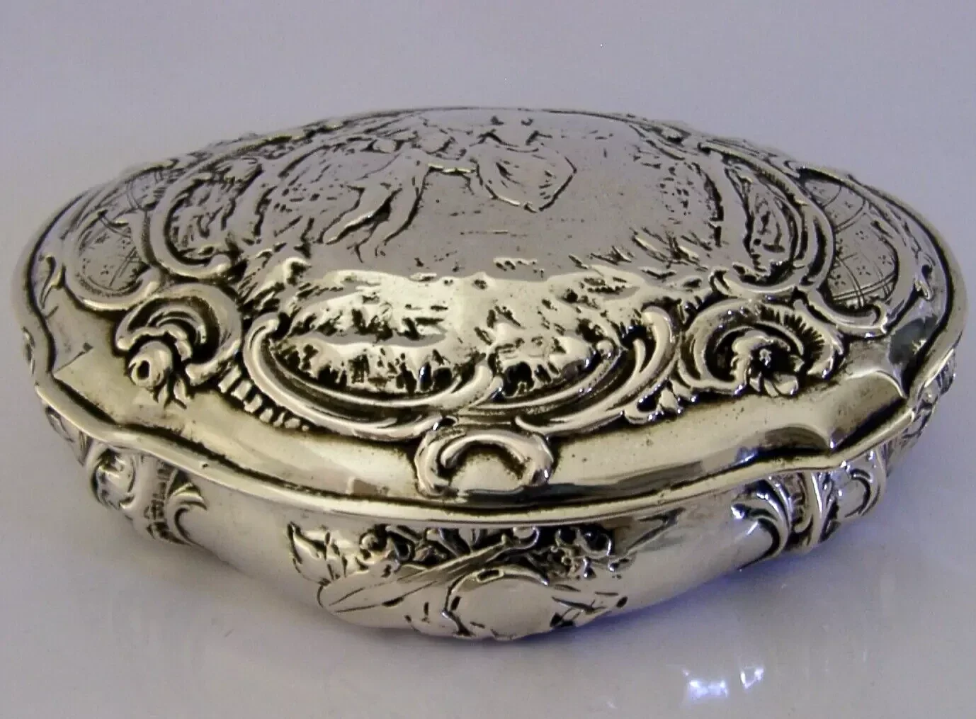 LARGE 156g RARE GERMAN HANAU SOLID SILVER TABLE BOX c1920 ANTIQUE 5 inch