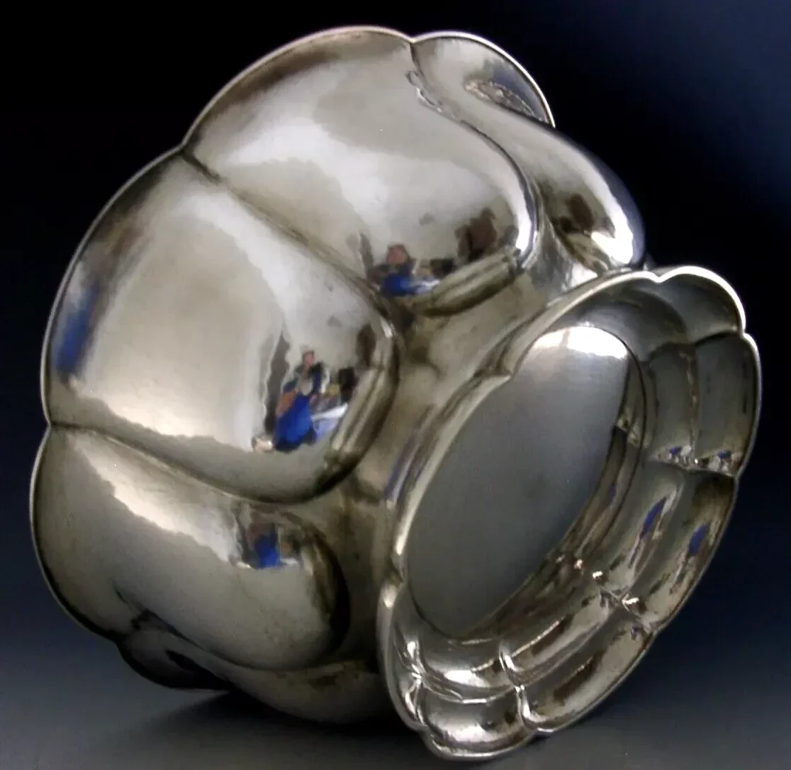 HUGE 848g STUNNING PLANNISHED GERMAN SOLID SILVER PUNCH BOWL 1920 ARTS & CRAFTS
