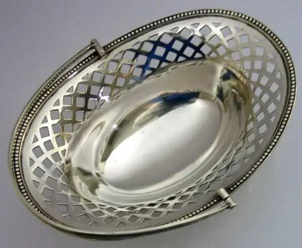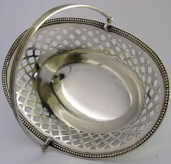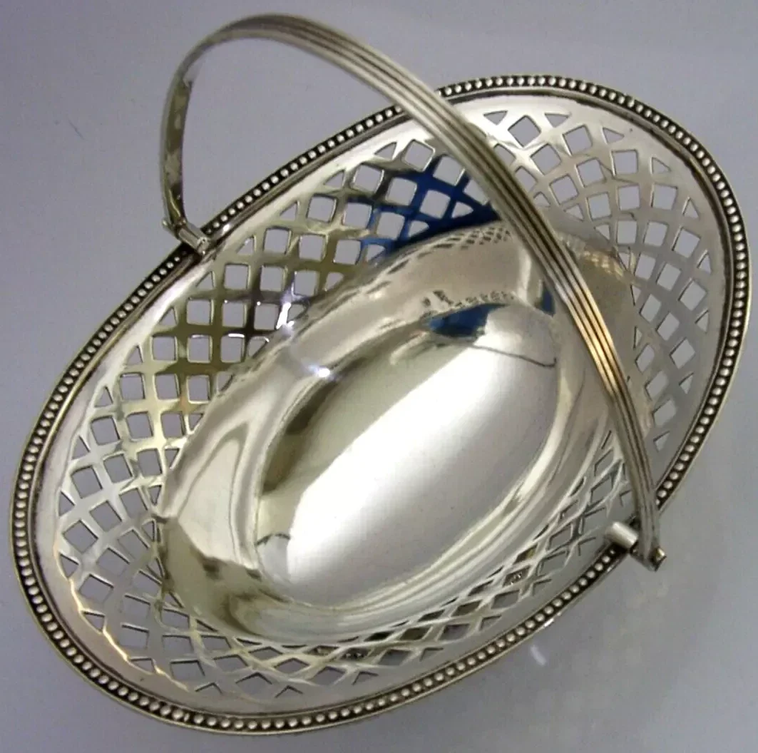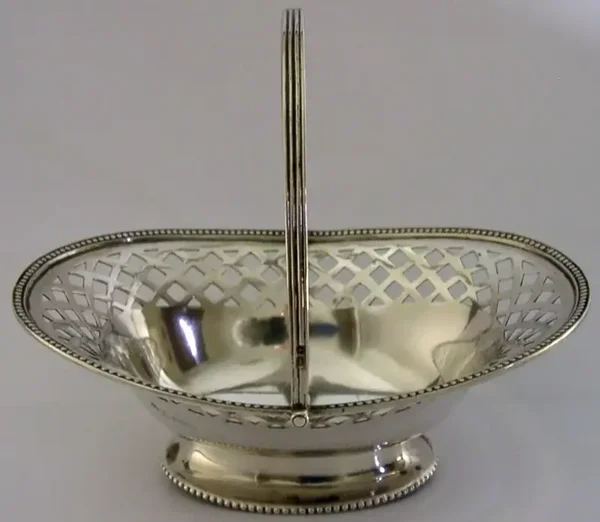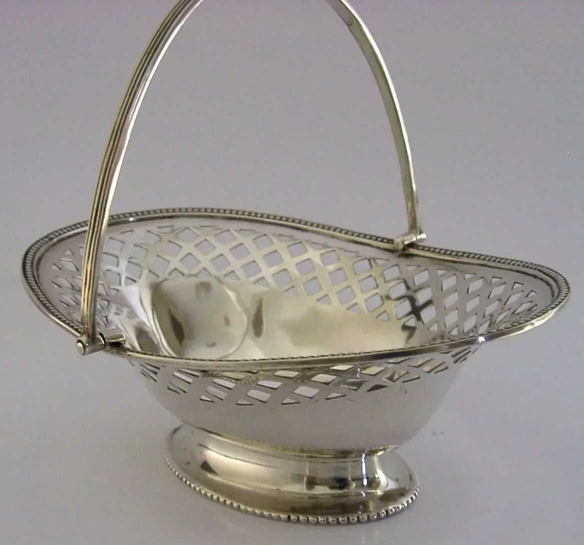 QUALITY ENGLISH STERLING SILVER SWING HANDLED BASKET BOWL 1917 ANTIQUE 110g