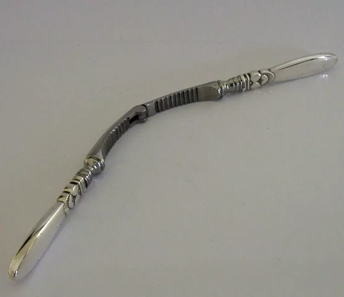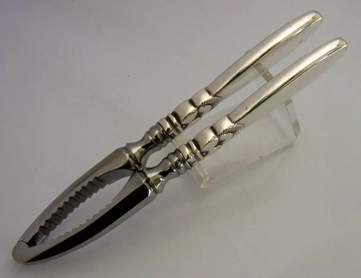 Rare Danish sterling silver handled nutcrackers. They are hallmarked STERLING DENMARK along with the makers mark of Georg Jensen, this mark was used between 1933 to 1944. They have been superbly made to the Cactus (Kaktus) pattern which was designed by designed by Gundorph Albertus. They are in superb condition being free from dings splits and repairs, just a tiny mark to one handle see final photo. They measure approx. 6.25 inches (15.8cm) long and weigh 140 grams. Super quality rare examples.