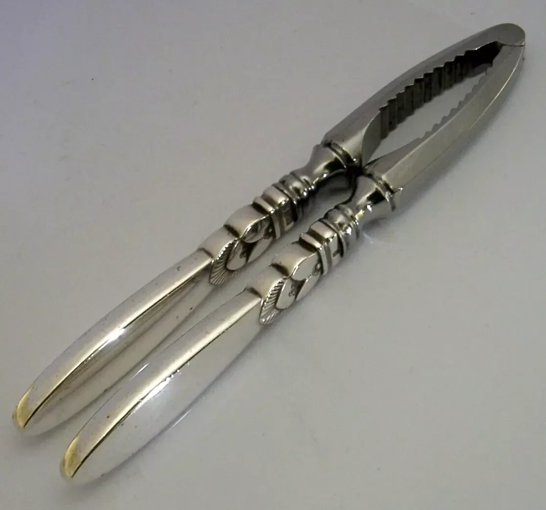 RARE STERLING SILVER GEORG JENSEN CACTUS NUTCRACKERS c1930 ANTIQUE 140g