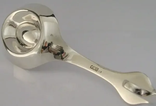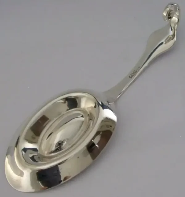 A very rare English all solid sterling silver spoon warmer / rest. It is hallmarked for London 1907 with the makers mark being LAG, possible commissioned as I've never seen one before. The basting or serving spoon rests on it and I expect the well around the dish held hot water keeping the spoon warm for future use during the meal. It has been superbly made and has been engraved with a crest used by the Yetsworth family. It is in superb condition being free from dings splits distortions and repairs, no wear, slight stress line on the curve see final photo. It measure approx. 11 inches (28cm) long by 3.5 inches (9cm) wide by 1.75 inches (4.4cm) to the top of the handle and weigh 274 grams. A super quality super rare piece.