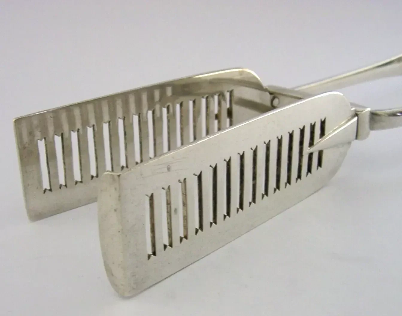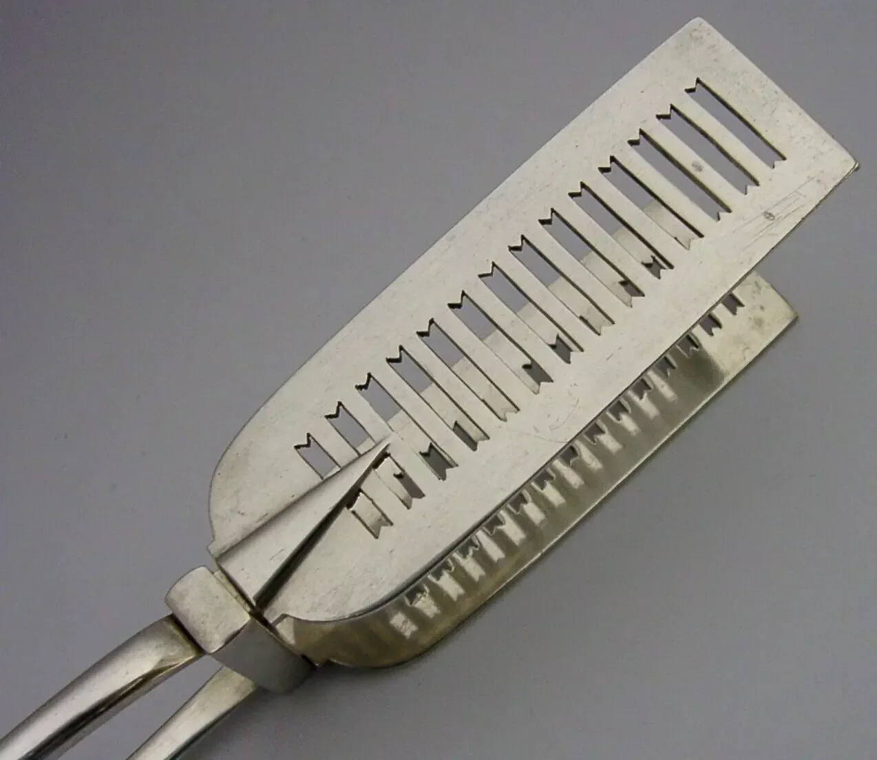 VICTORIAN WALKER FAMILY CRESTED STERLING SILVER SERVING TONGS 1885 ANTIQUE 160g