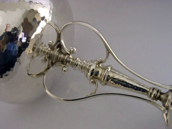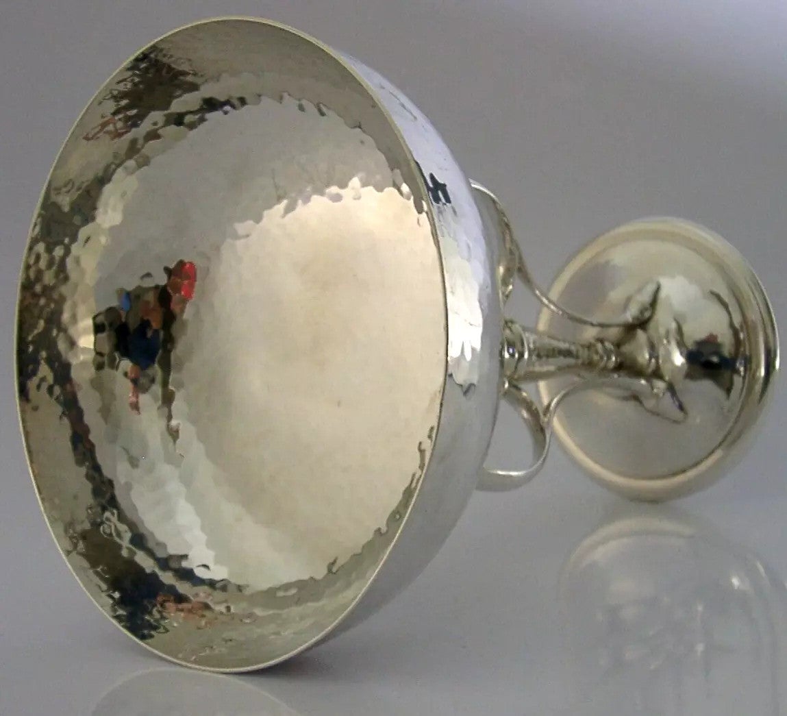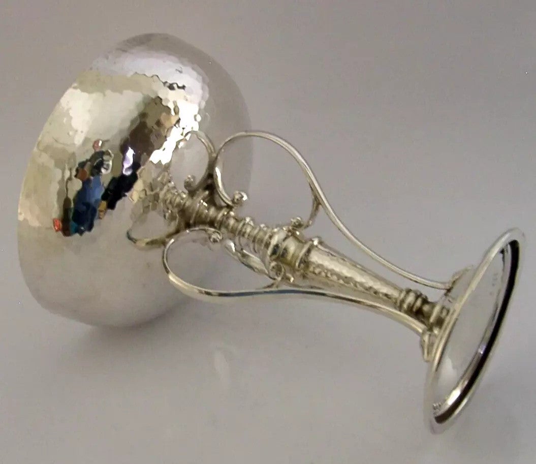 A beautiful English antique solid sterling silver tazza bowl. It is hallmarked for Sheffield 1910 with the maker being James Dixon & Sons Ltd. It has a beautiful Art Nouveau design and is in superb condition being free from dings splits holes and repairs. It measures over 4.5 inches (11.7cm) across the rim by over 2.75 inches (7.3cm) across the base by over 5.75 inches (15cm) tall and weighs 276 grams (total silver weight i.e. not weighted). A very stunning piece.