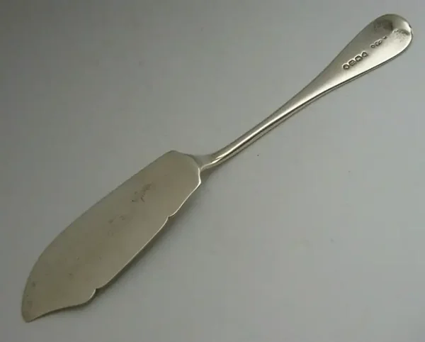 A superb English solid sterling silver butter spreader. It is hallmarked for London 1873 with the makers mark being GA. It has been superbly designed and is in superb condition being free from dings splits and repairs. It measures approx. 7.5 inches (19cms) long by over 1 inch (3cms) and weighs 45 grams. A beautifully made example.