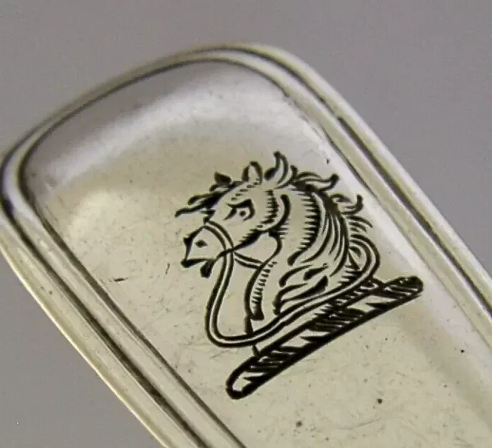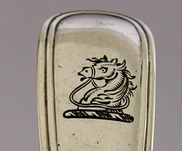 STERLING SILVER HAMILTON FAMILY CRESTED EGG SPOON 1863 ANTIQUE HORSE