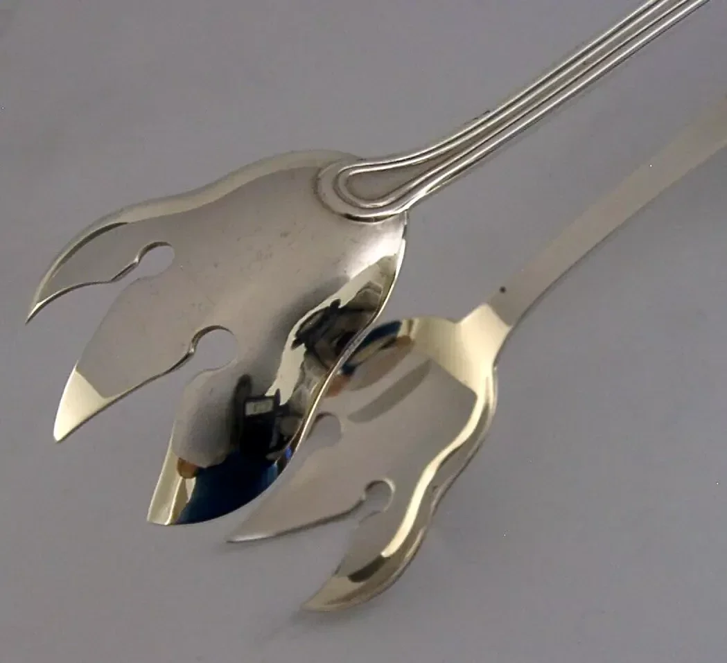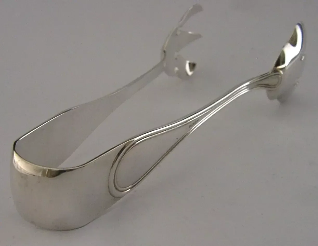 Superb rare English solid sterling silver ice tongs. They are hallmarked for Birmingham 1996 with the makers marks being VS. They have been beautifully designed having broad grips and are in superb condition being free from dings splits distortions and repairs. They measure approx. 6.5 inches (16.3cms) long by 1.5 inches (3.8cms) wide and weighs 68 grams. Superb examples.