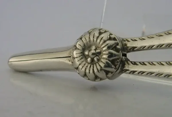 High quality English solid sterling silver grape shears. They are hallmarked for London 1972 with the maker’s marks being R&D. They have been beautifully made being cast with a pierced Elizabethan design to their arms. They are in superb condition being free from dings splits distortions and repairs. They measure approx. 5.75 inches (14.1cms) long by 2 inches (5cms) wide at the handles and weigh 62 grams. Superbly made very high quality examples.