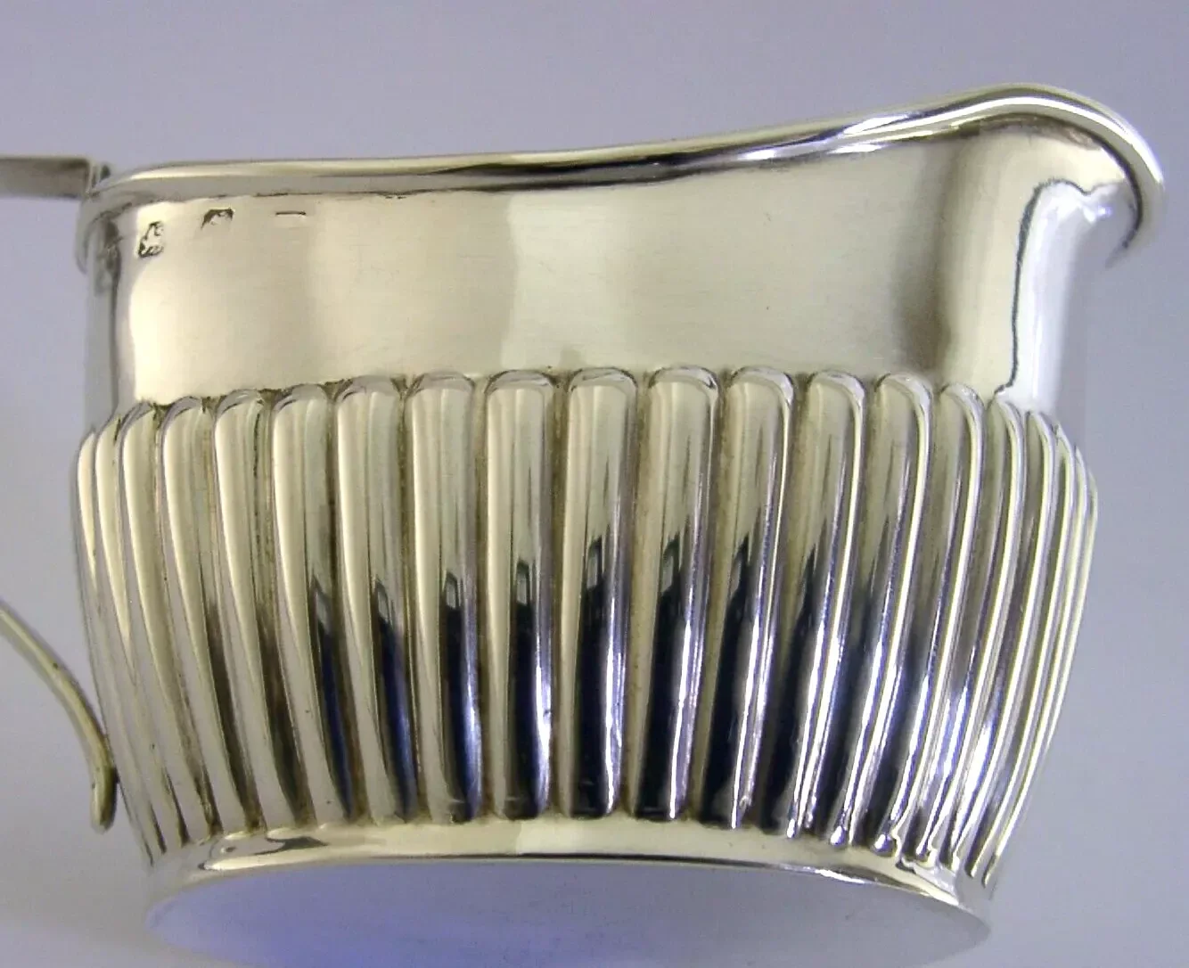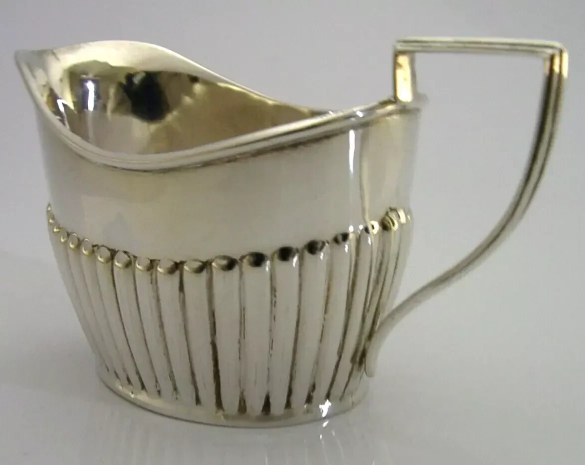 A beautiful high quality English Victorian antique solid sterling silver cream jug. It is hallmarked for Birmingham 1899 with the maker's mark being rubbed. It has been beautifully designed being half fluted and is in super condition being free from dings splits and repairs. It measures almost 2.5 inches (6.2cm) tall to the top of the handle by 4.25 inches (10.7cm) across lip to handle and over 2 inches (5.2cm) wide and weighs 50 grams. A beautiful high quality clean piece.