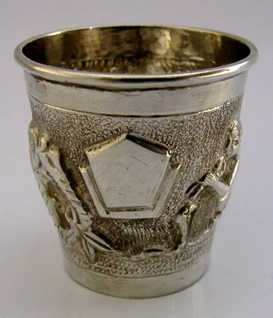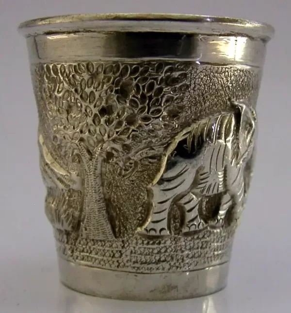 ANGLO INDIAN STERLING SILVER SHOT TOT CUP c1940 BARWARE ART DECO ERA