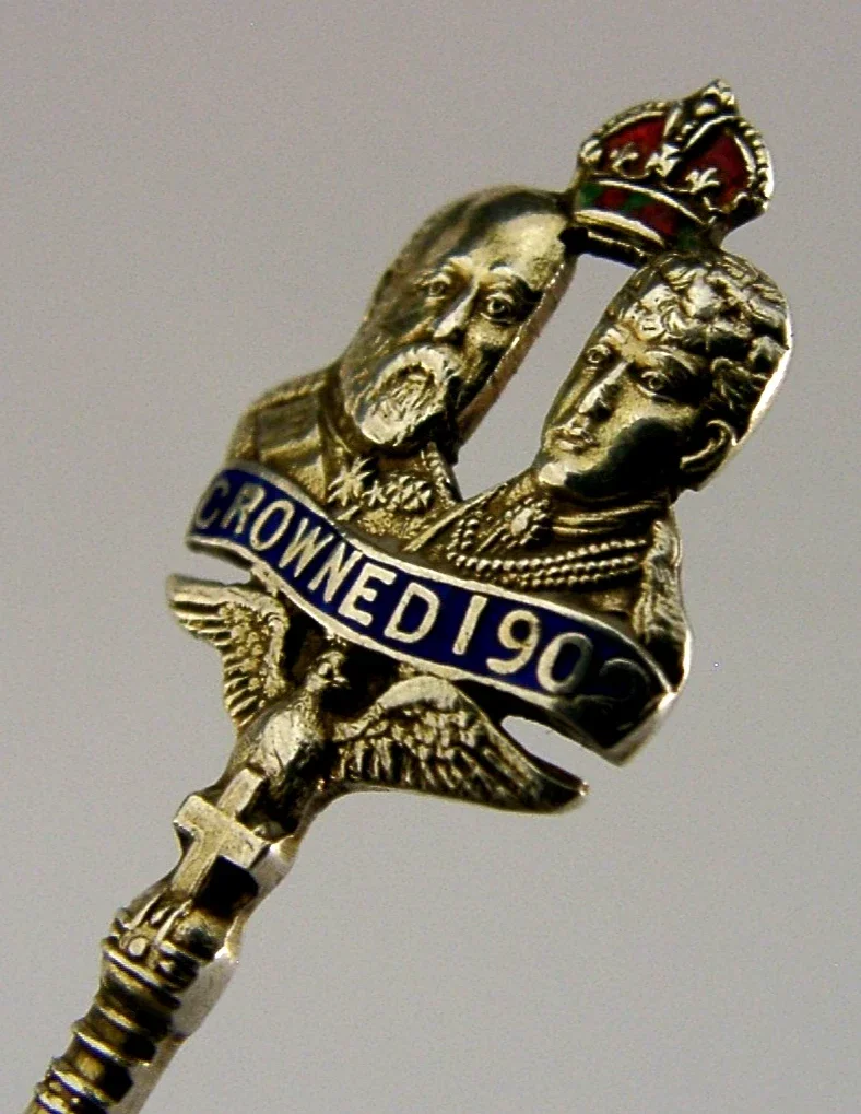 ENGLISH STERLING SILVER ENAMEL EDWARD VII CORONATION SPOON 1901 ANTIQUE