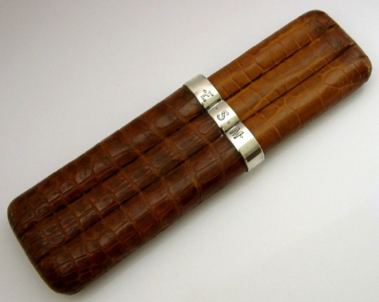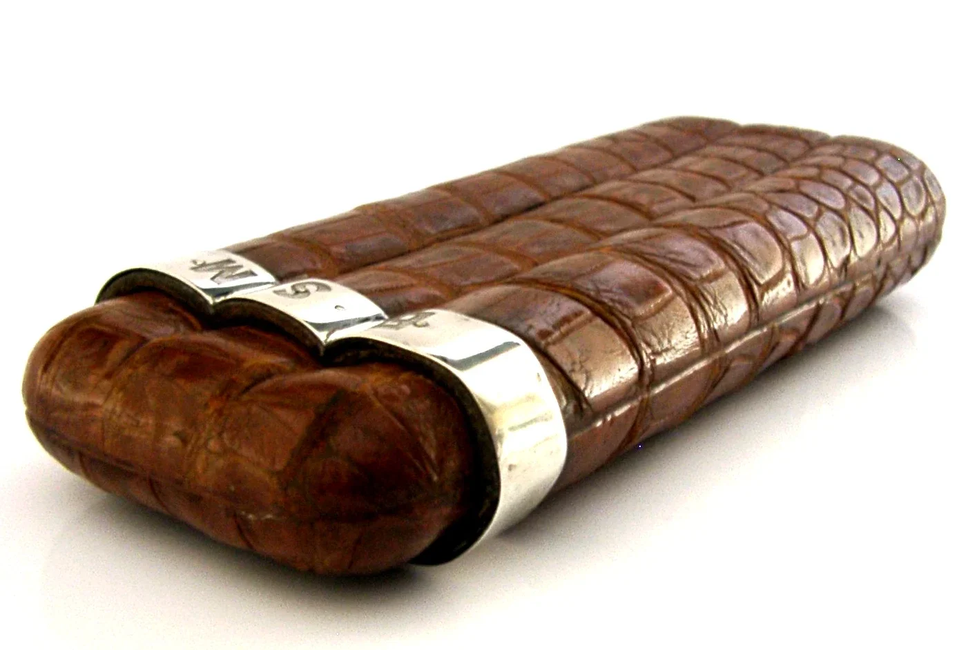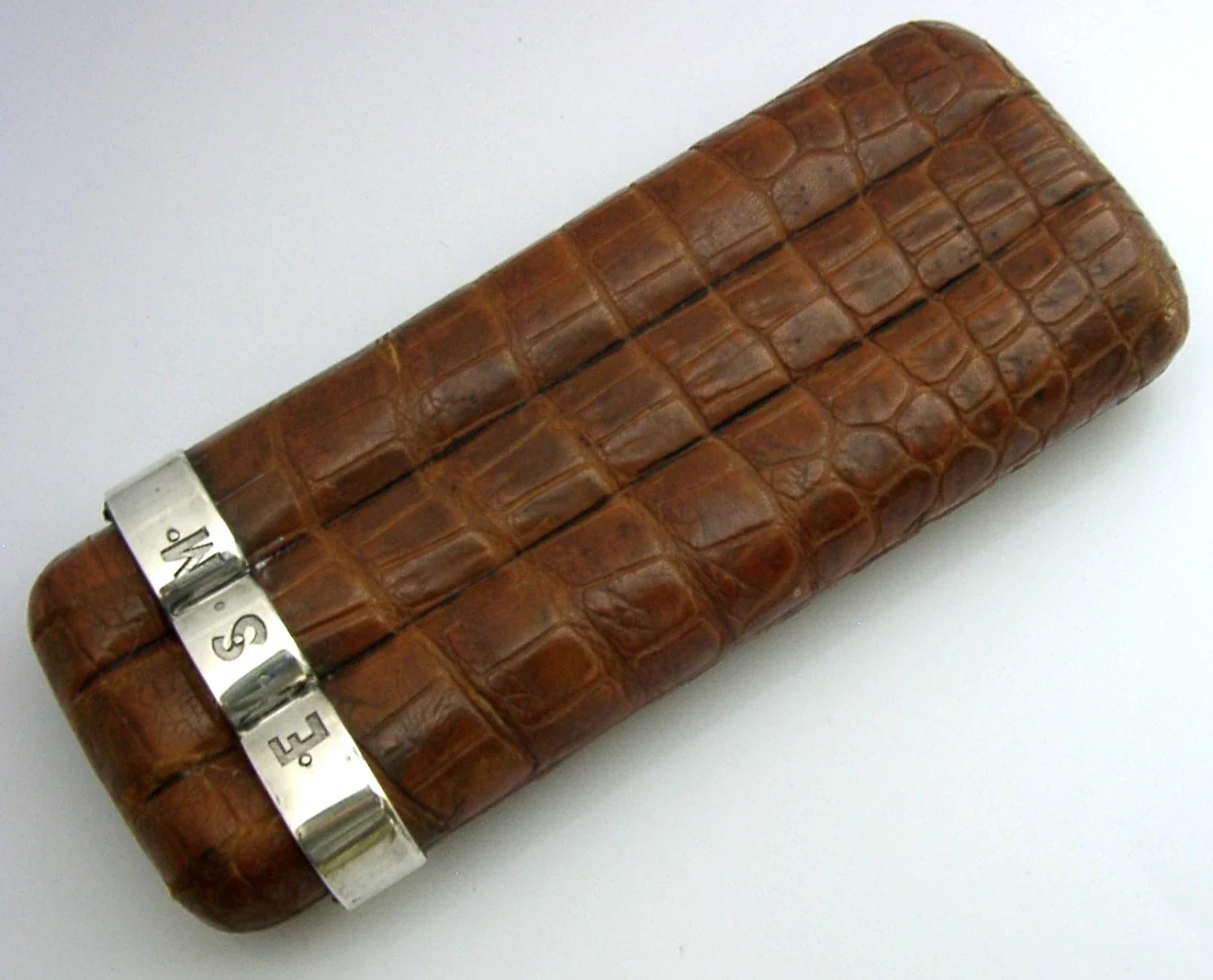 TOP QUALITY STERLING SILVER MOUNTED CROC CIGAR HOLDER 1892 ENGLISH ANTIQUE