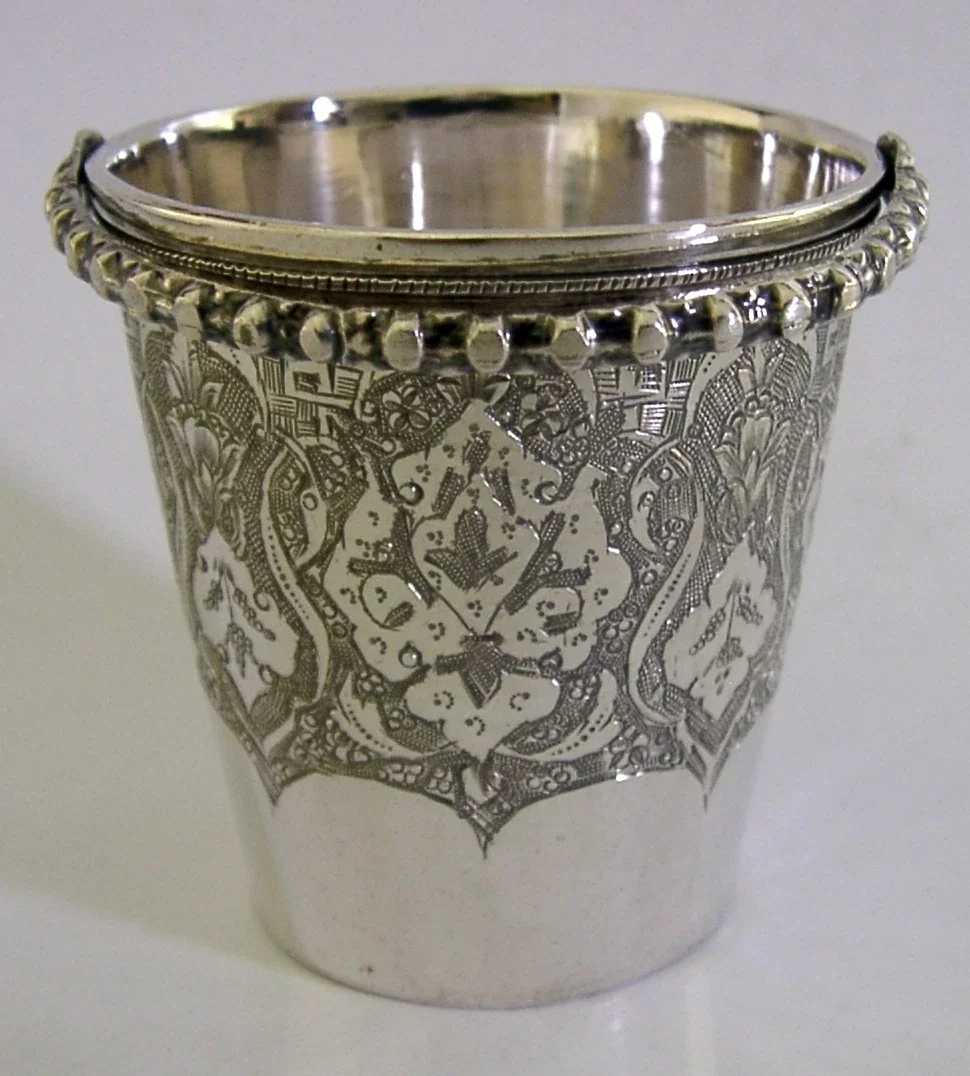 84 SOLID SILVER BUCKET CUP BEAKER c1940 MIDDLE EASTERN ANTIQUE 56g