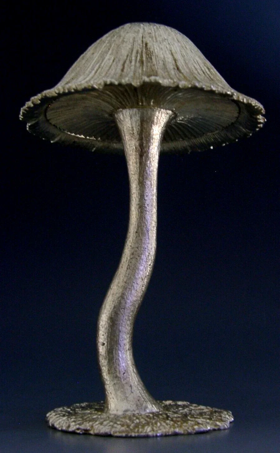 A rare English cast solid sterling silver real sized mushroom statue. It is hallmarked for London 1976 with the maker being the designer Christopher Nigel Lawrence. Note this is number 1 of only 20 ever made. It has been beautifully designed being solid cast in the form of a mushroom with the cap being removeable to reveal two rabbits. It is in perfect condition being free from dings splits and repairs. It measures approx. 4.5 inches (11.4cm) tall by 2.75 inches (7cm) across the mushroom cap by almost 2.25 inches (5.2cm) across the base and the whole piece weighs 256 grams. A very rare example.