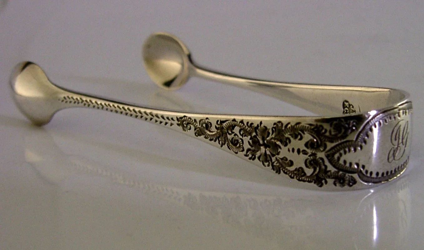 PRETTY ANTIQUE ENGLISH STERLING SILVER SUGAR TONGS 1904