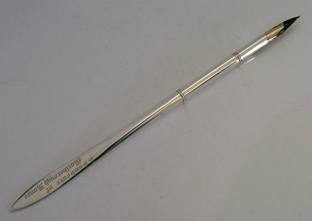 ENGLISH STERLING SILVER MARLBOROUGH HOUSE DIP PEN OPENER 1928 ANTIQUE