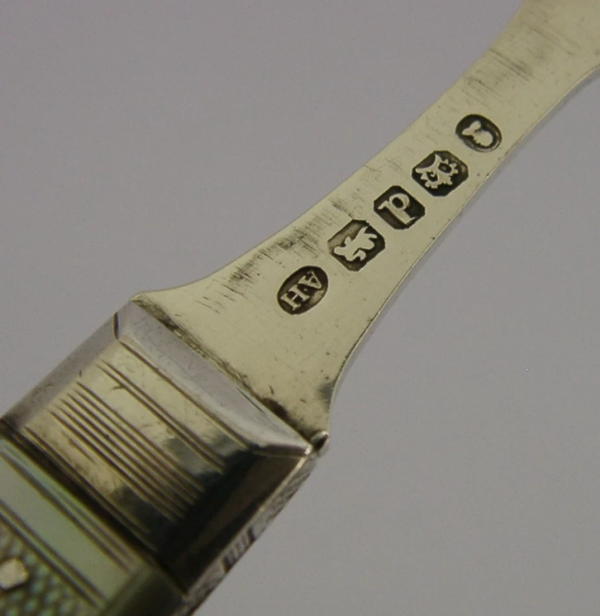 A rare English antique solid sterling silver folding fork. It is hallmarked for Sheffield 1827 with the maker being AH. It has been superbly made and interestingly engraved with the bees and a beehive along with the original owners name which looks to be J E Pollard. It is in super condition being free from dings splits chips cracks and repairs. It measures approx. 3.25 inches (7.7cm) long closed 5.5 inches open and weighs 21 grams. A very nice quality rare piece.