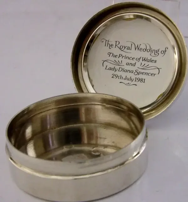 ENGLISH STERLING SILVER ENAMEL ROYAL WEDDING BOX 1981 ROYALTY 52g PRINCE CHARLES