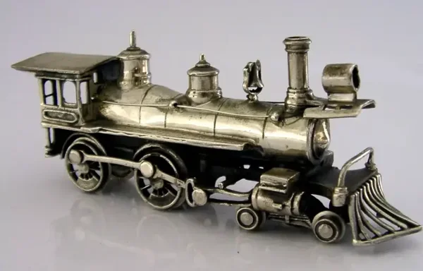 GOOD SIZED 170g RARE SOLID SILVER MINIATURE STEAM TRAIN c1970 ANTIQUE HEAVY