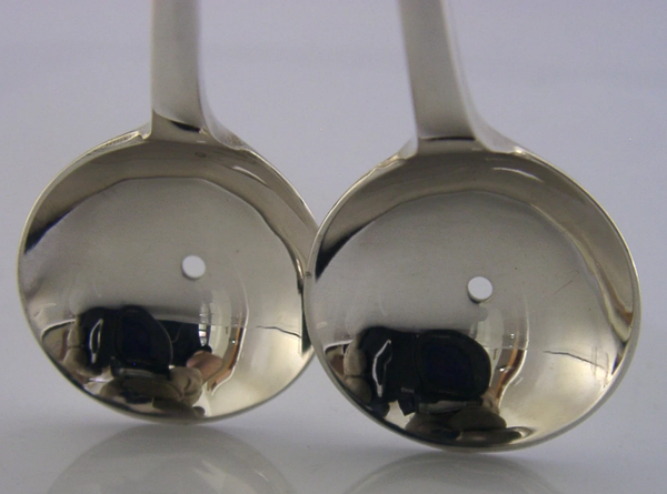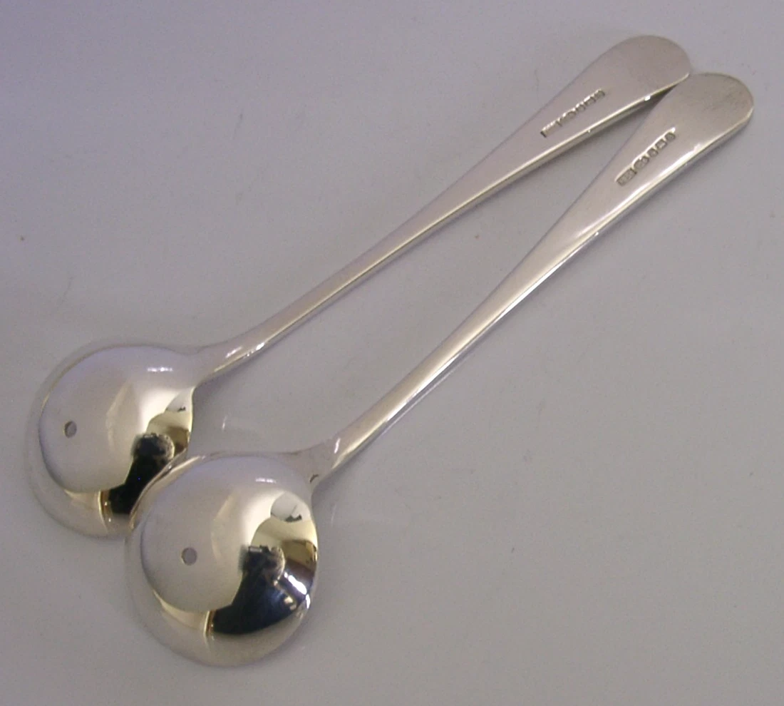 SUPERB MINT LARGE STERLING SILVER SALT SPOONS 2007 4.5 inch 33g UNUSUAL