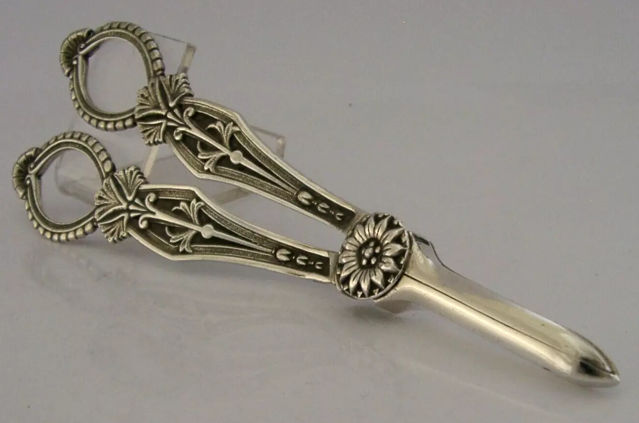 QUALITY GOTHIC ENGLISH SOLID STERLING SILVER GRAPE SHEARS 1968 BARWARE