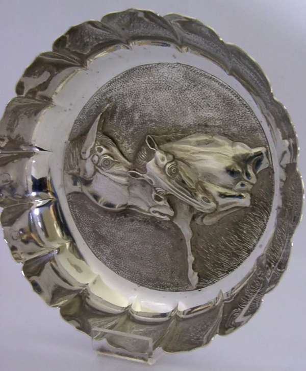 STUNNING IRISH STERLING SILVER HORSE & FOAL DISH 1979 HEAVY 192g RIDING RACING