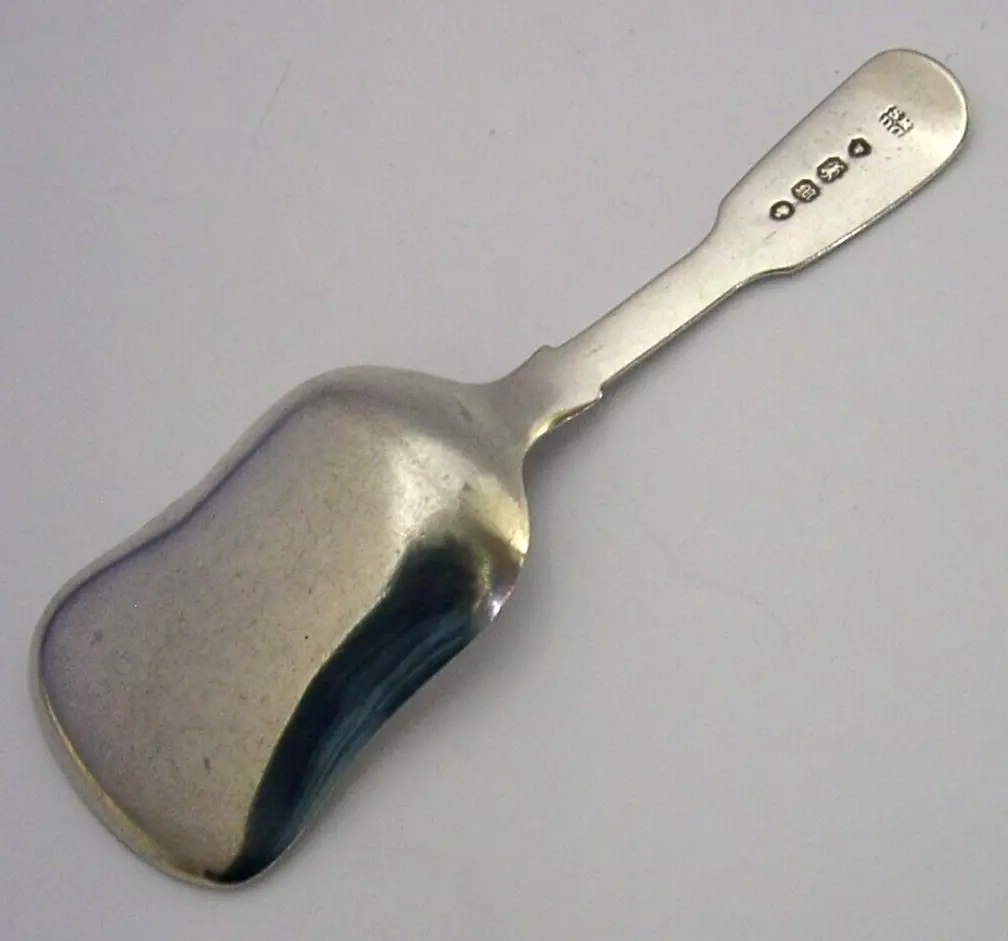ENGLISH VICTORIAN FIELD, MILNES, FAMILY CRESTED STERLING SILVER CADDY SPOON 1835