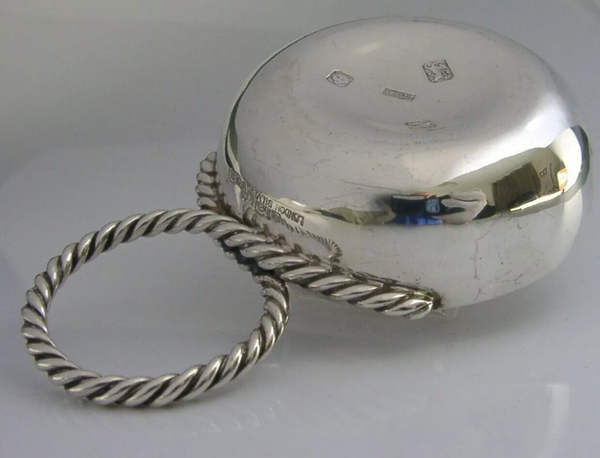 HAND MADE PLANNISHED ENGLISH SOLID STERLING SILVER WINE TASTER 1987 ROPE HANDLE