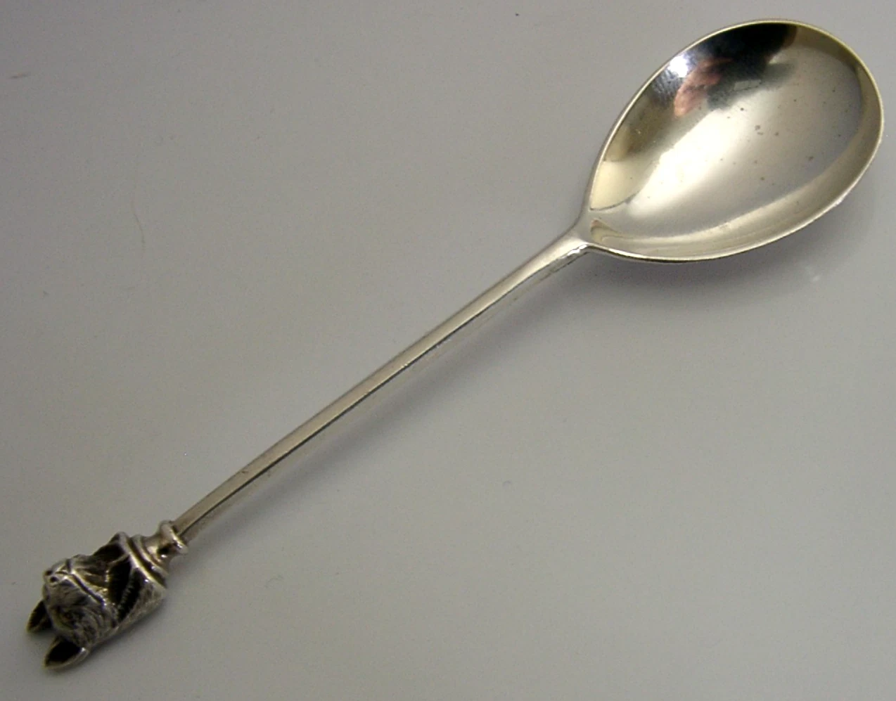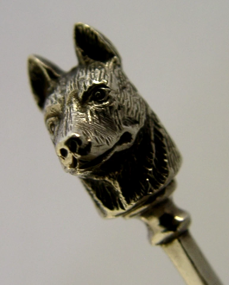 ENGLISH STERLING SILVER ALSATIAN DOG SPOON 1930 ANIMAL ANTIQUE GERMAN SHEPHERD