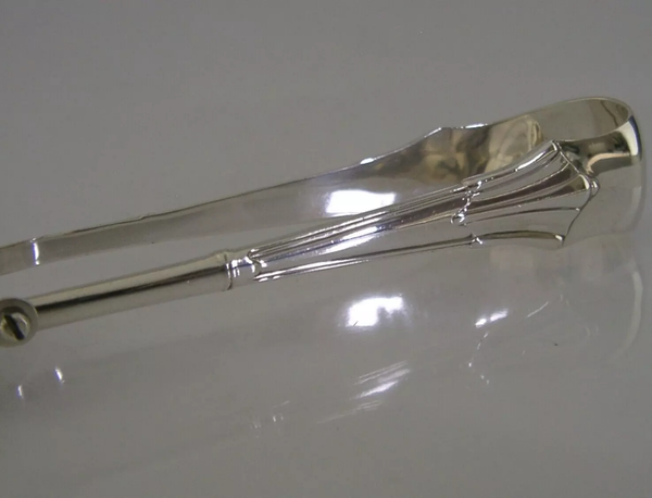 High quality Albany Pattern English Victorian antique solid sterling silver asparagus, vegetable, or sandwich serving tongs. They are hallmarked for London 1899 with the maker being Goldsmiths & Silversmiths Co (William Gibson & John Lawrence Langman). They are highly sprung and in good working order. They are in superb condition being free from dings splits distortions and repairs. They measure approx. 9 inches (23cm) long by 1 inch (2.6cm) wide and they weigh an impressive 136 grams. Super quality examples.