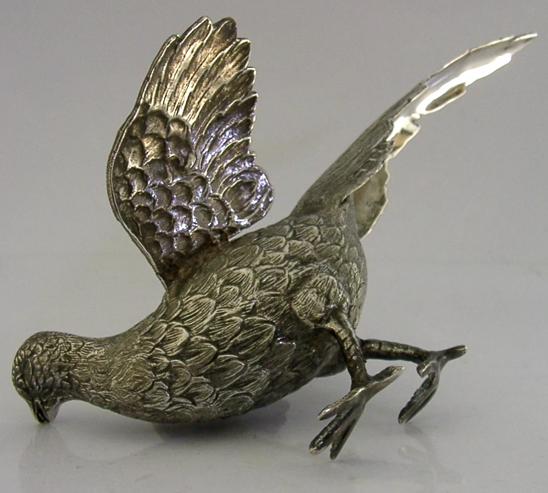 LARGE 7inch 198g RARE STERLING SILVER PHEASANT BIRD FIGURE 1973 HUNTING SHOOTING