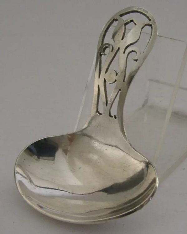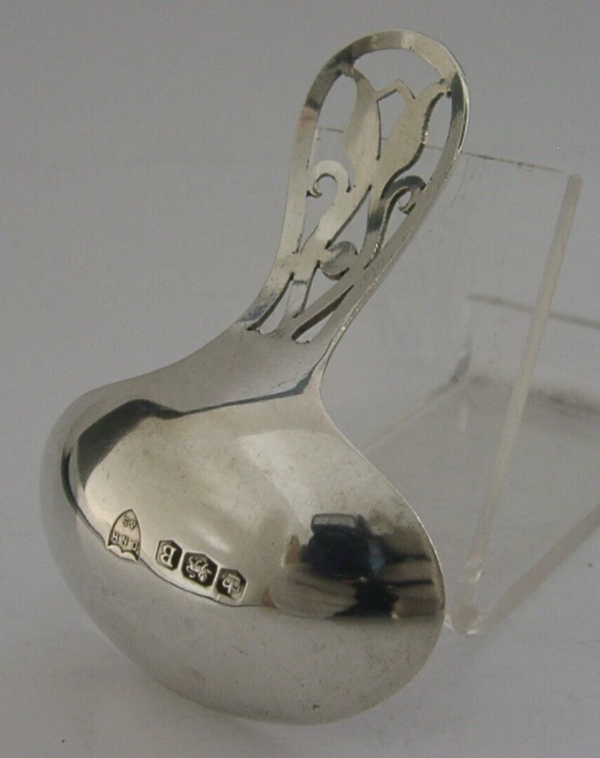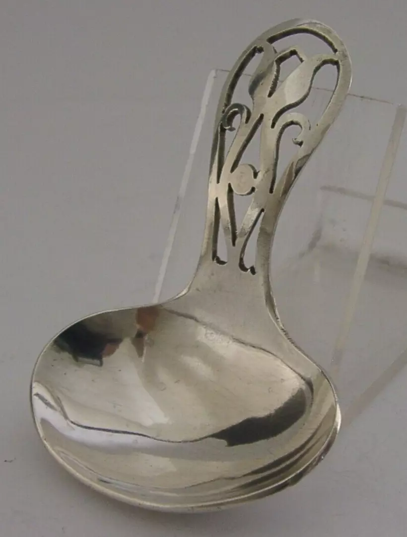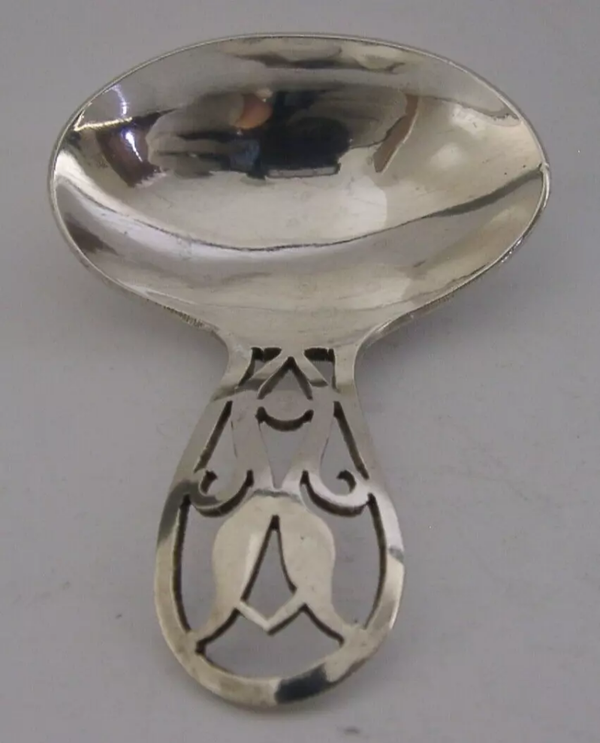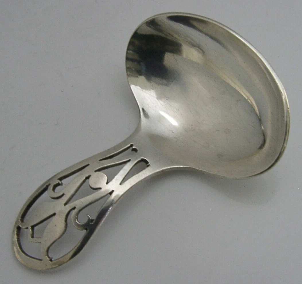 ENGLISH SOLID STERLING SILVER PIERCED CADDY SPOON 1944 ART DECO