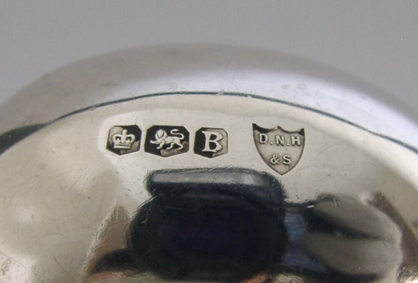 A super quality English solid sterling silver caddy spoon. It is hallmarked for Sheffield 1944 with the makers mark being DNH&S. It has been beautifully designed having a broad bowl and pierced handle. It is in super condition being free from dings splits holes and repairs. It measures approx. 2.75 inches (6.8cms) long by 1.75 inches (4.6cm) wide and weighs 21 grams. A beautifully made example.