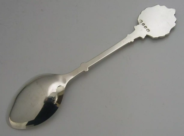 A nice quality English solid sterling silver spoon. It is hallmarked for London 1971 with the makers marks being that of John Pinches (Medallists) Ltd. It has been nicely design having the Roman Goddess Minerva to its terminal. It is in super condition being free from dings splits distortions and repairs. It measures approx. 5 inches (12.3cm) long by over 1 inch (2.8cm) across the bowl and weighs 22 grams. A beautiful example.