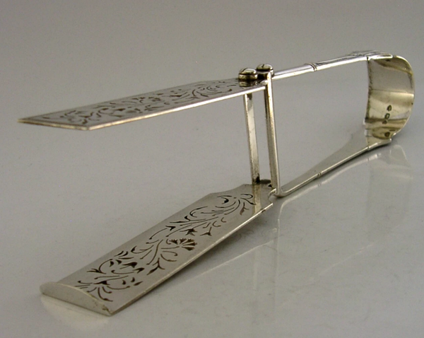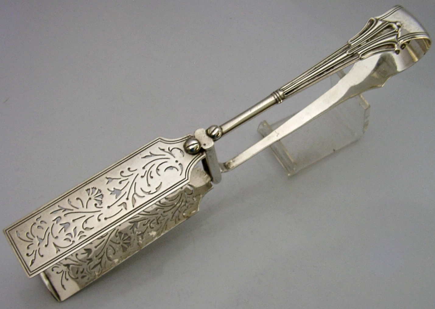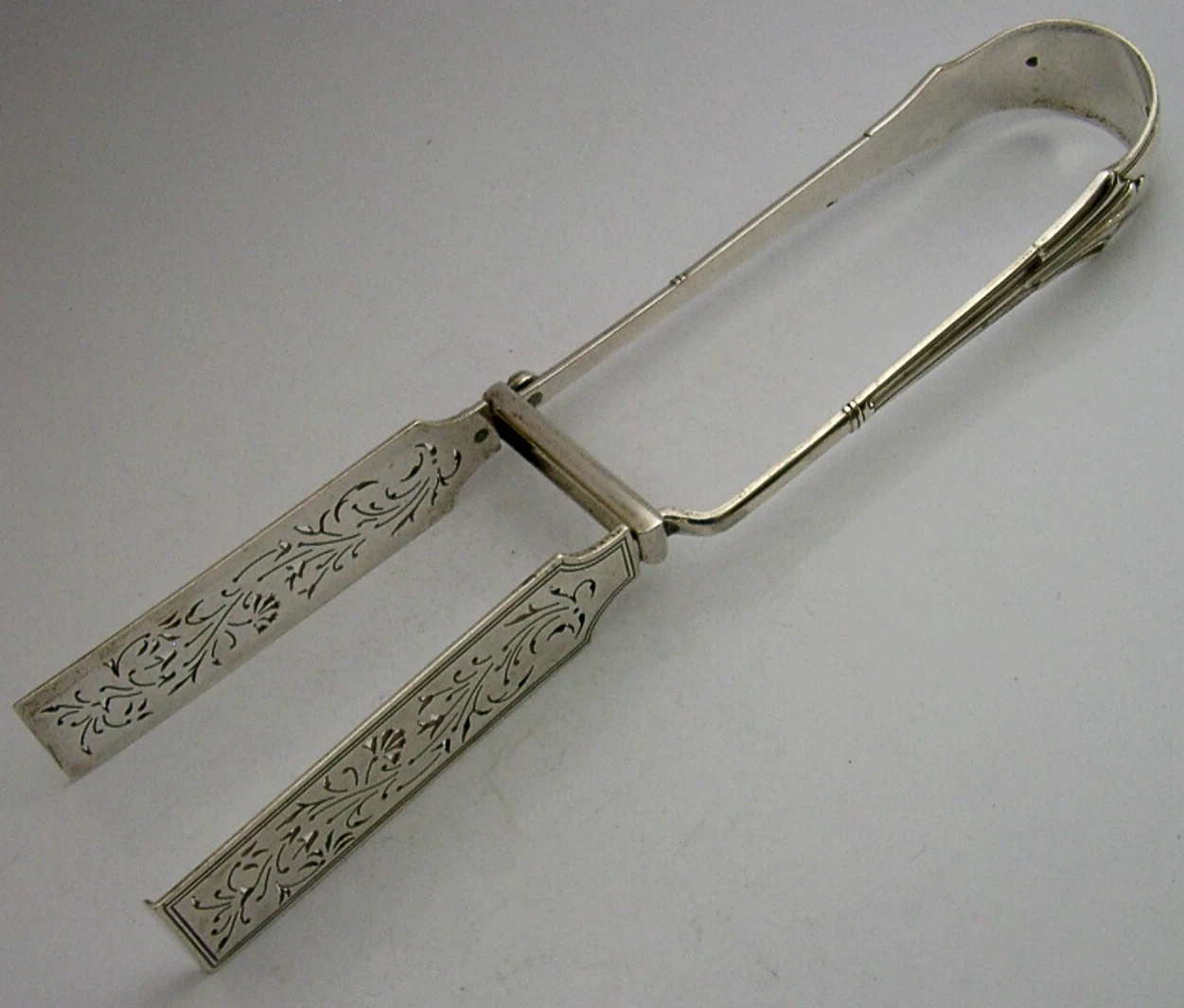 PRETTY ENGLISH STERLING SILVER ASPARAGUS VEGETABLE SERVING TONGS 1890 ANTIQUE