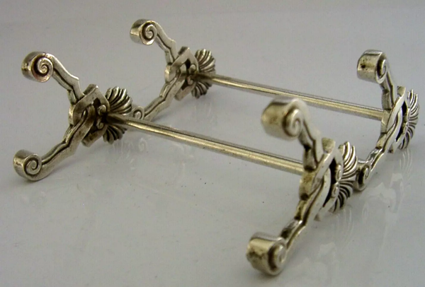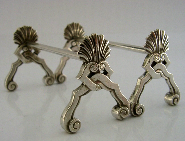 BELGIAN 800 CAST SOLID SILVER CUTLERY RESTS c1920 ANTIQUE ART DECO 70g