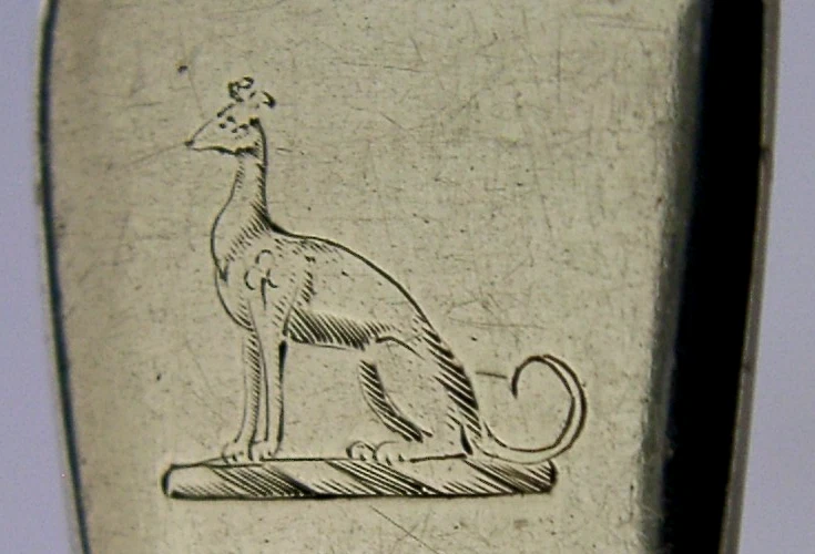 ENGLISH 60g STERLING SILVER GREYHOUND DOG CRESTED SPOON 1807 GEORGIAN ANTIQUE