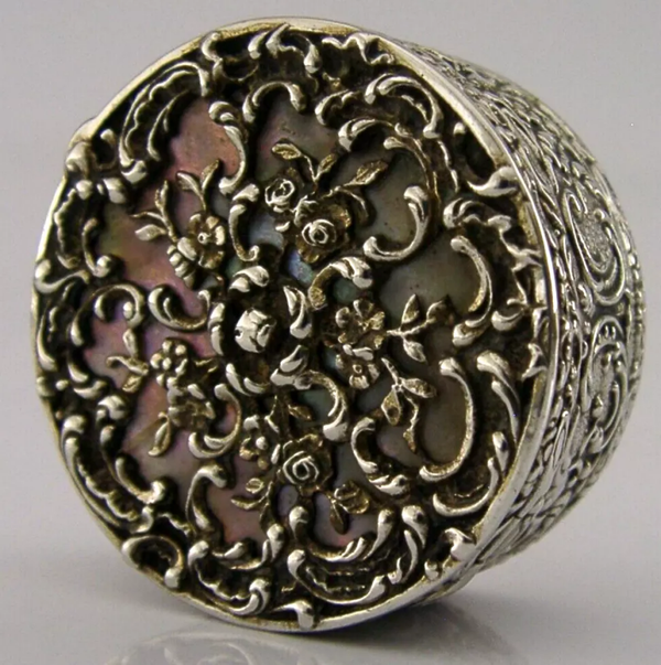 SUPERB GERMAN SOLID 800 SILVER MOTHER of PEARL BOX c1900 ANTIQUE