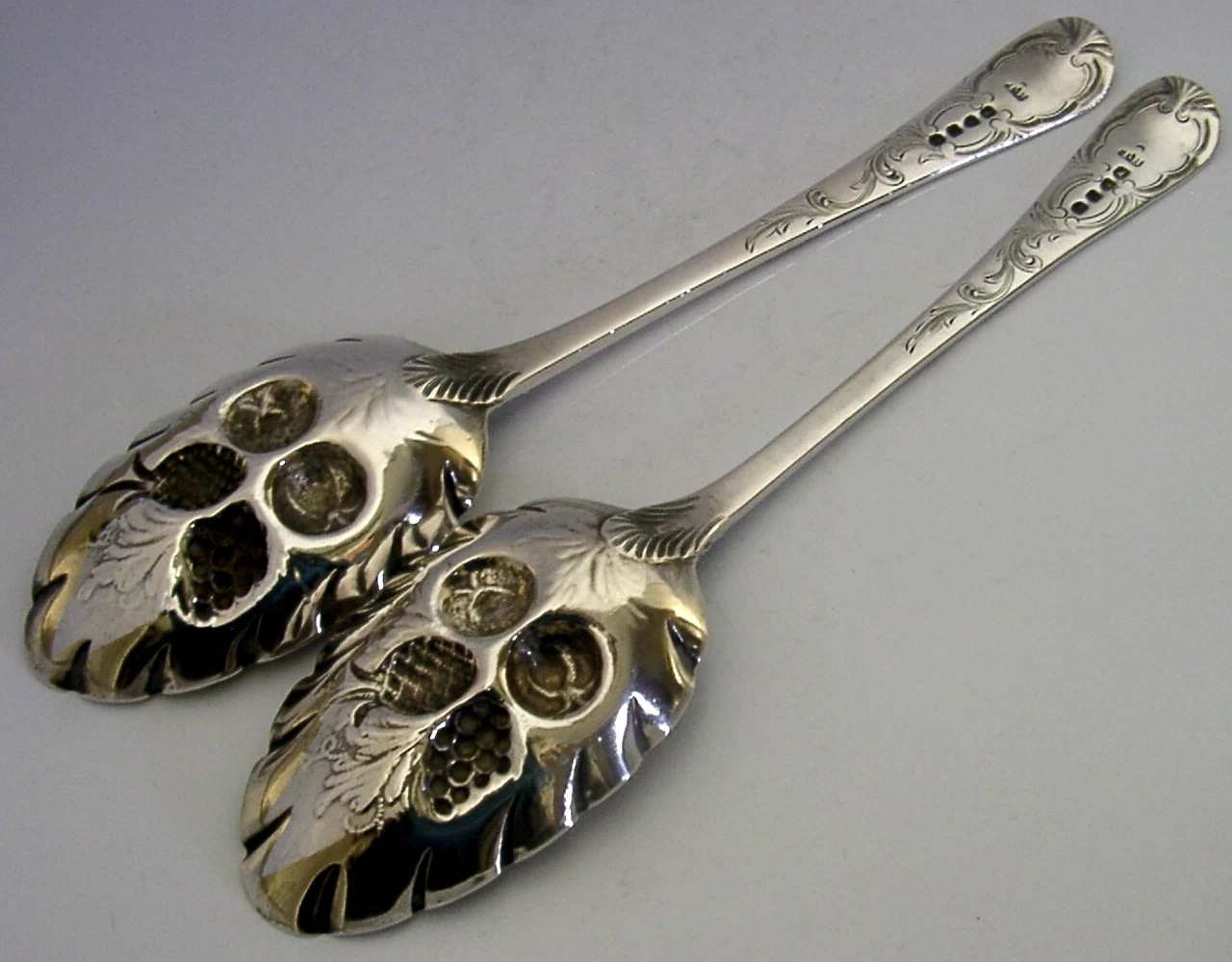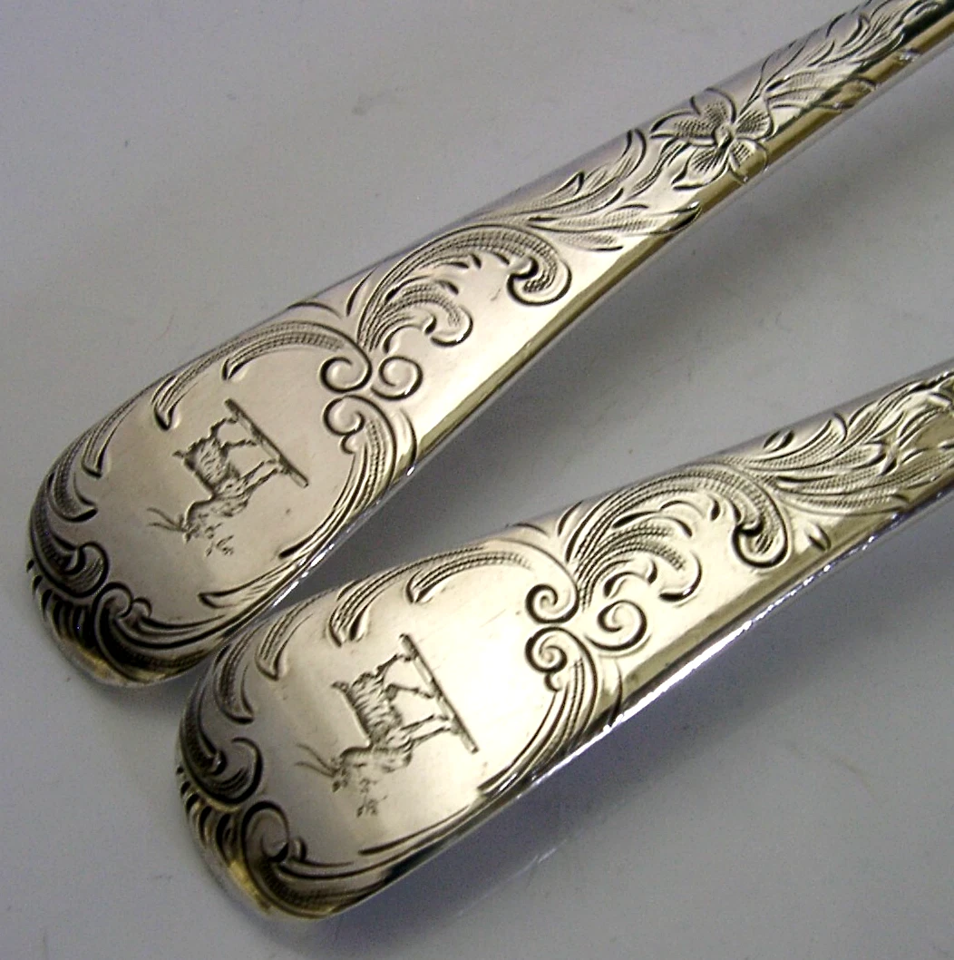 STERLING SILVER BORDELAYS FAMILY GOAT CRESTED BERRY SERVING SPOONS 1816 ANTIQUE