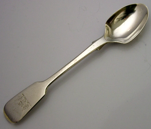 UNUSUAL STERLING SILVER DALTON FAMILY CRESTED EGG SPOON 1841 ANTIQUE