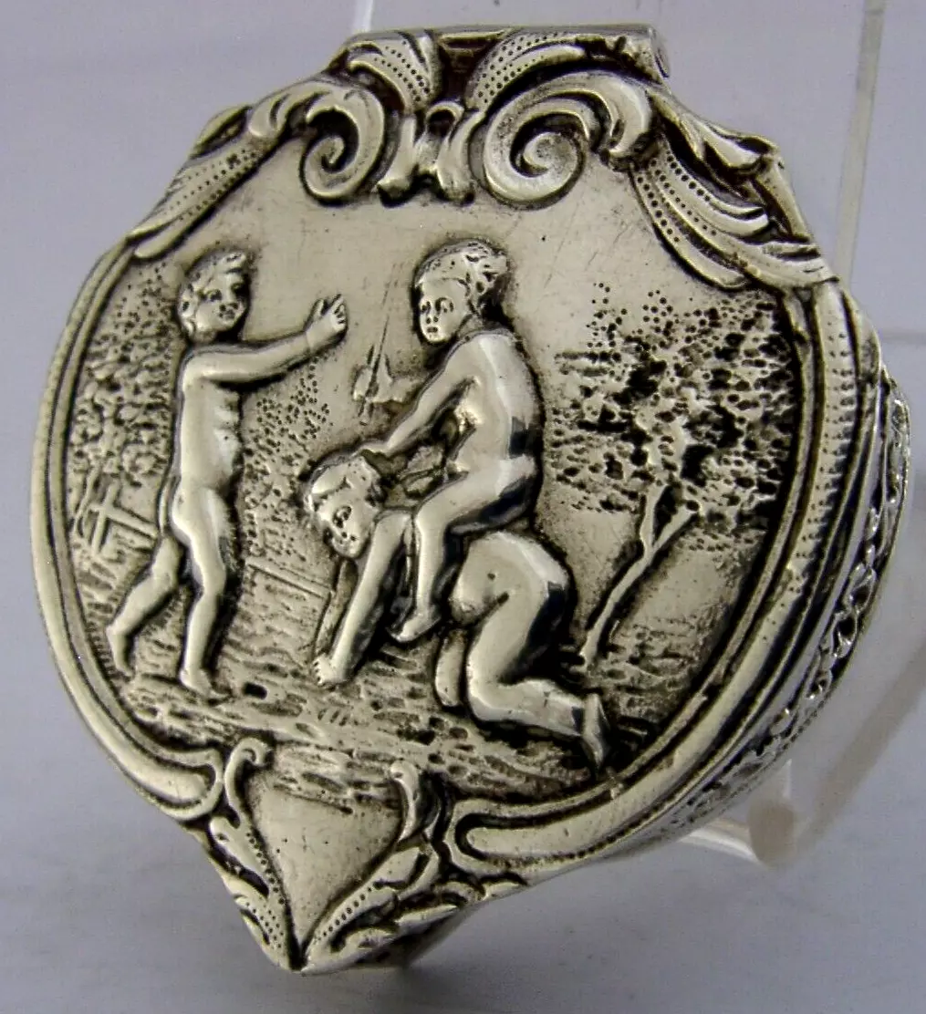SUPERB CAST GERMAN HANAU SOLID SILVER CHERUBS BOYS PLAYING BOX c1900 ANTIQUE