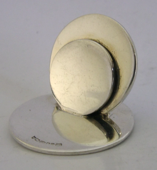 A beautiful English sterling silver menu holder or place marker. It is hallmarked for London 2005 with the maker’s marks being AN. It has been superbly designed and is in super condition being free from dings splits and repairs. It measures approx. 1.25 inches (3.2cm) wide by 1 inch tall and weighs 29 grams. A very well-designed example.