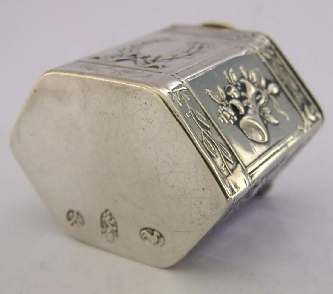 GERMAN HANAU SOLID SILVER SNUFF PEPPERMINT PILL BOX c1890 ANTIQUE